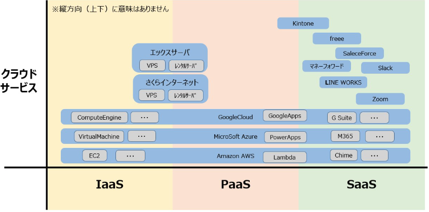 代表的なクラウドサービスに関して、どこに分類されるかをまとめてみました。