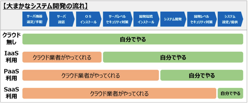 言い換えると、どこまでをクラウド業者でやってほしいか?どこから自分たちがやりたいか?ということです。