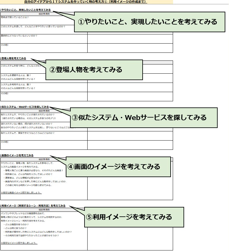 自分のアイデアからITシステムを作っていく時の考え方①の説明は以上です。